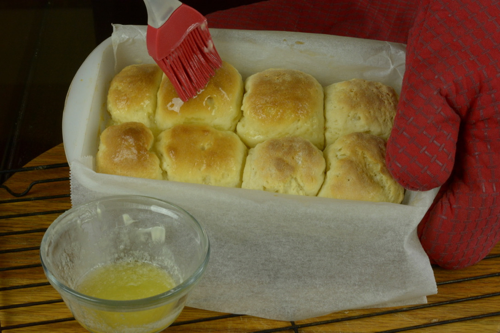 While the rolls are rising we'll have a short break to clean up then come back for the final cooking and taste our warm Dinner Rolls together. Make sure you've got plenty of butter!